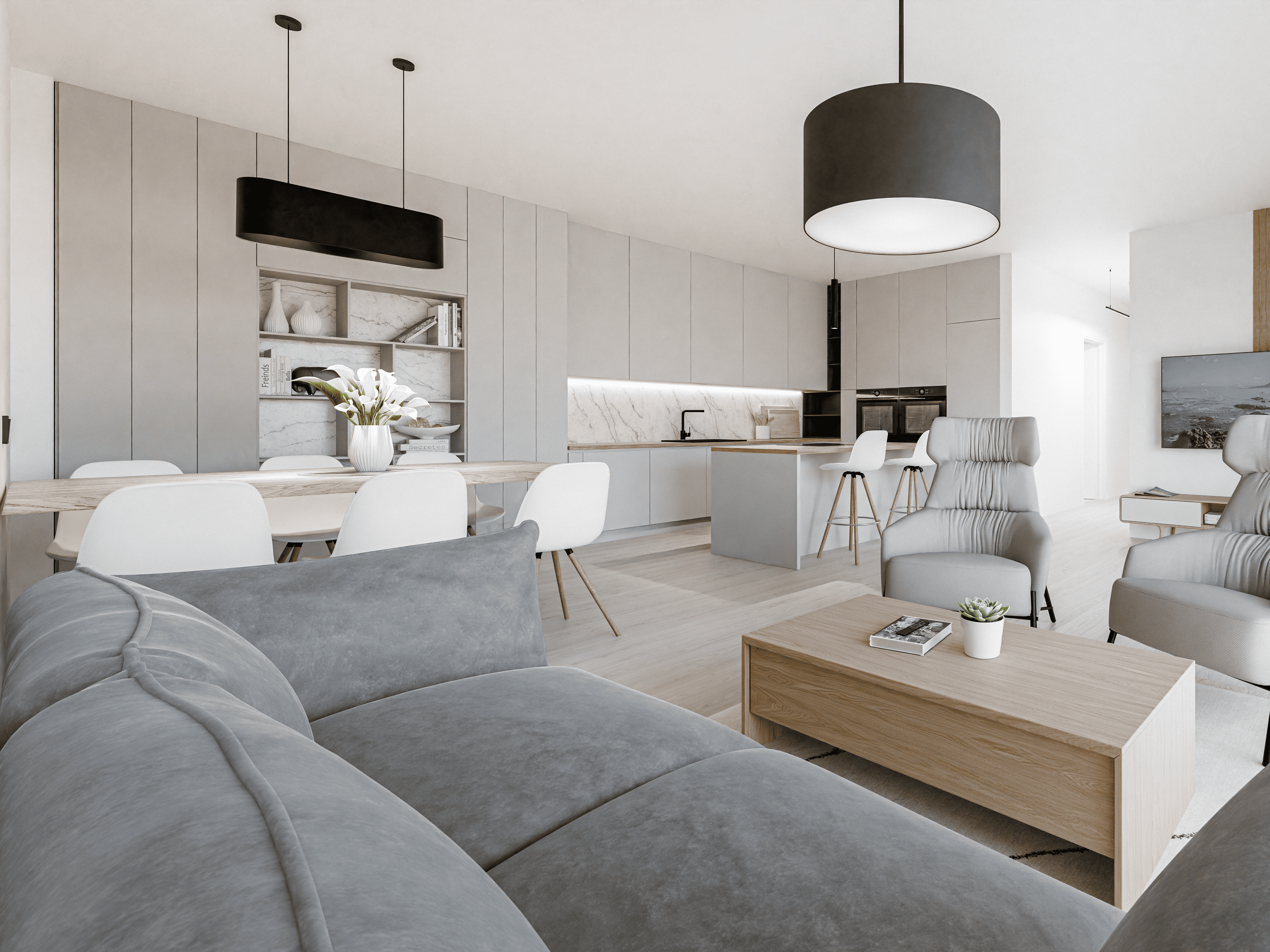 Doživite čar skandinavskih interierjev, ki jih odlikujeta preprostost in funkcionalnost. Ta oblikovalski slog poudarja naravno svetlobo, umirjene barve in minimalistično estetiko, kar ustvarja topel in harmoničen bivalni prostor, ki brezhibno združuje udobje z eleganco.