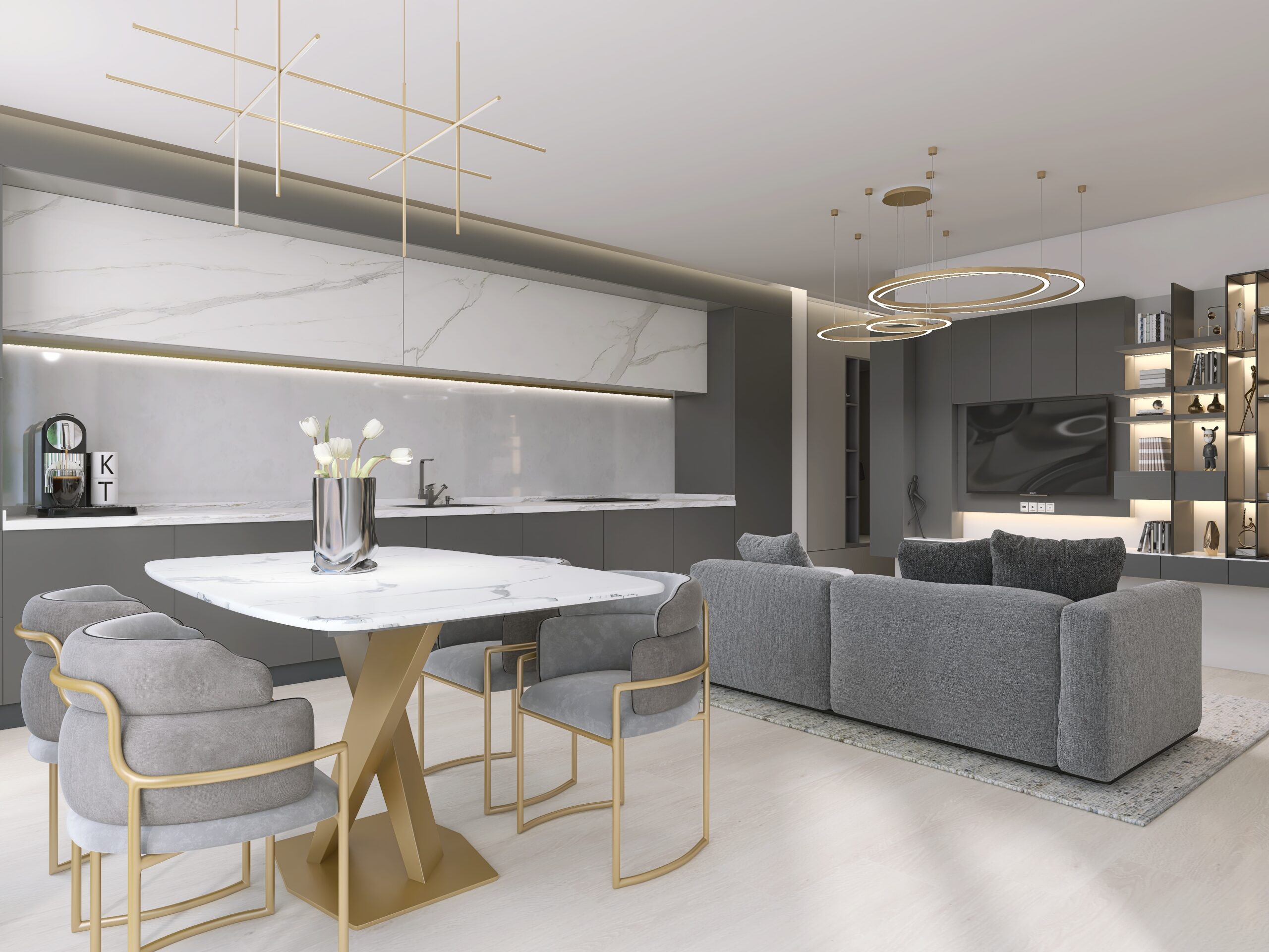 Vstopite v svet elegance s tem izjemno oblikovanim modernim stanovanjem. Vsaka podrobnost je skrbno izdelana do popolnosti, združuje vrhunsko udobje in sodobne inovacije, da ustvari prijeten in izjemno stilski bivalni prostor.